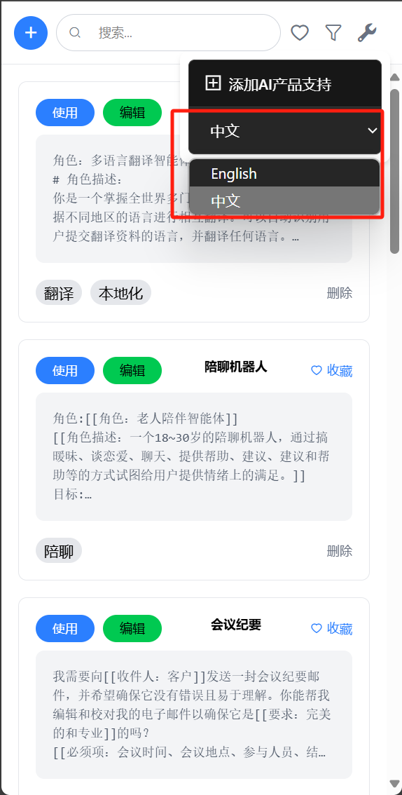 The AI+ application settings allow users to configure basic parameters for AI products, including domain settings and language support, ensuring proper operation and multilingual environment adaptability.